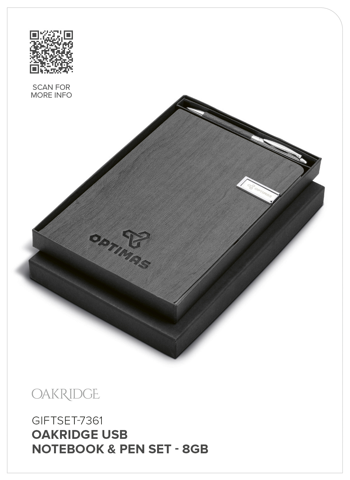The Oakridge Six Gift Set includes an Oakridge Ball Pen and Oakridge USB A5 Notebook.