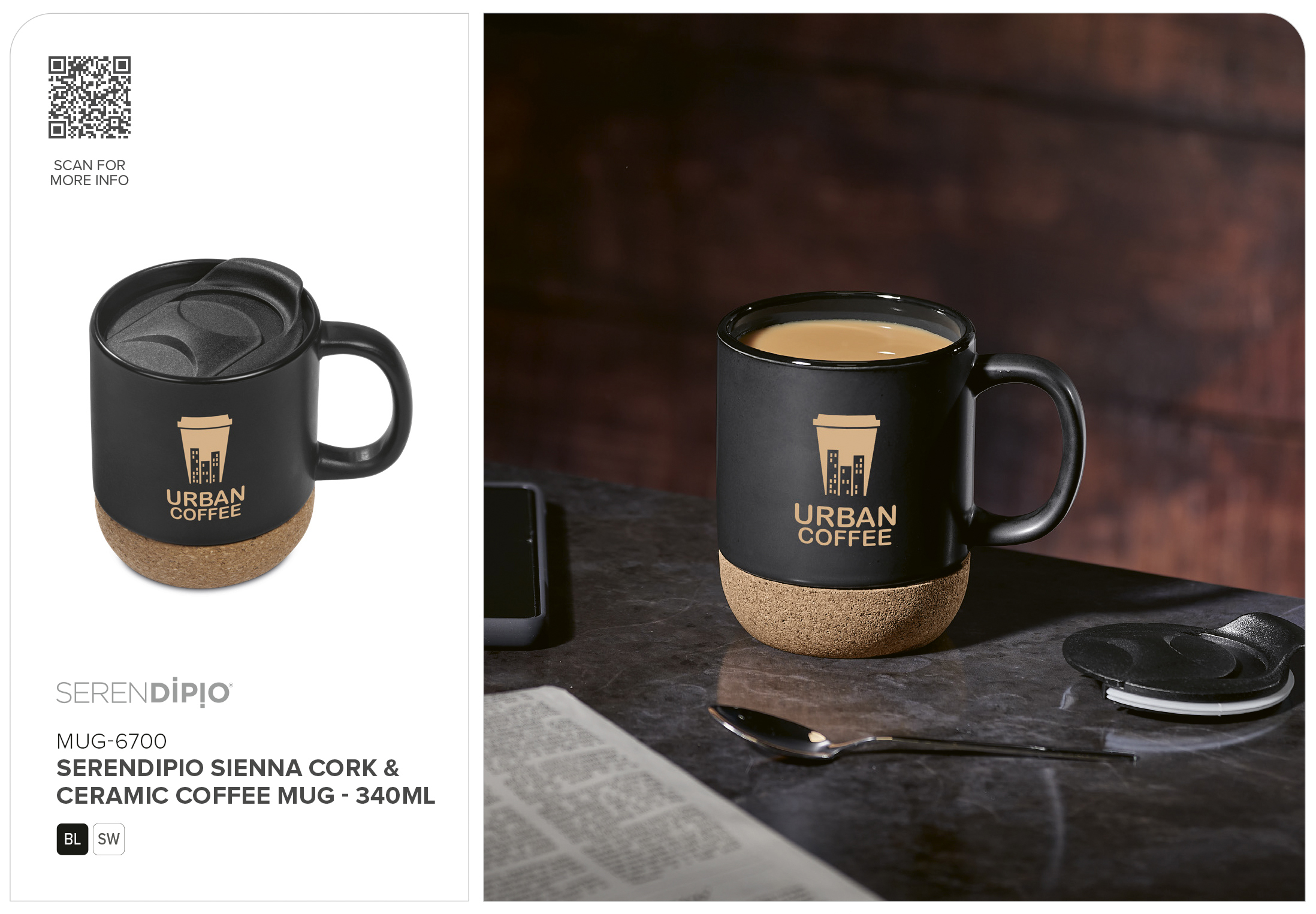 This ceramic mug has a cork base to add a natural touch, and a slider lid to give you the option of keeping your drink a little warmer for longer, and drinking on the go. The mug can be laser-engraved, which provides a more subtle and long lasting branding opportunity for your logo or message.