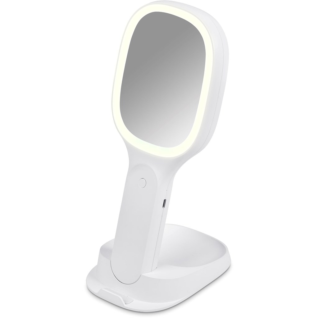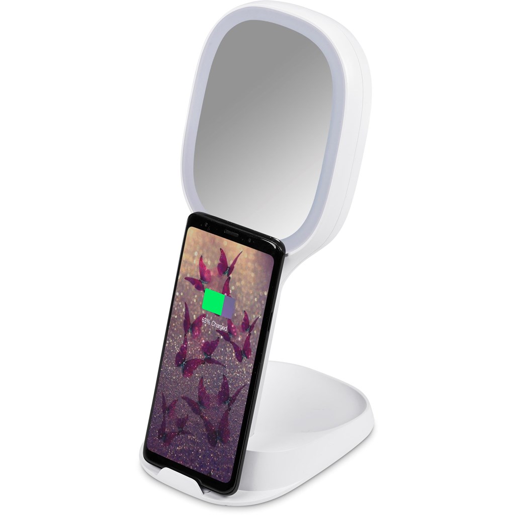 - portable LED double-side makeup mirror, wireless charger & phone holder.